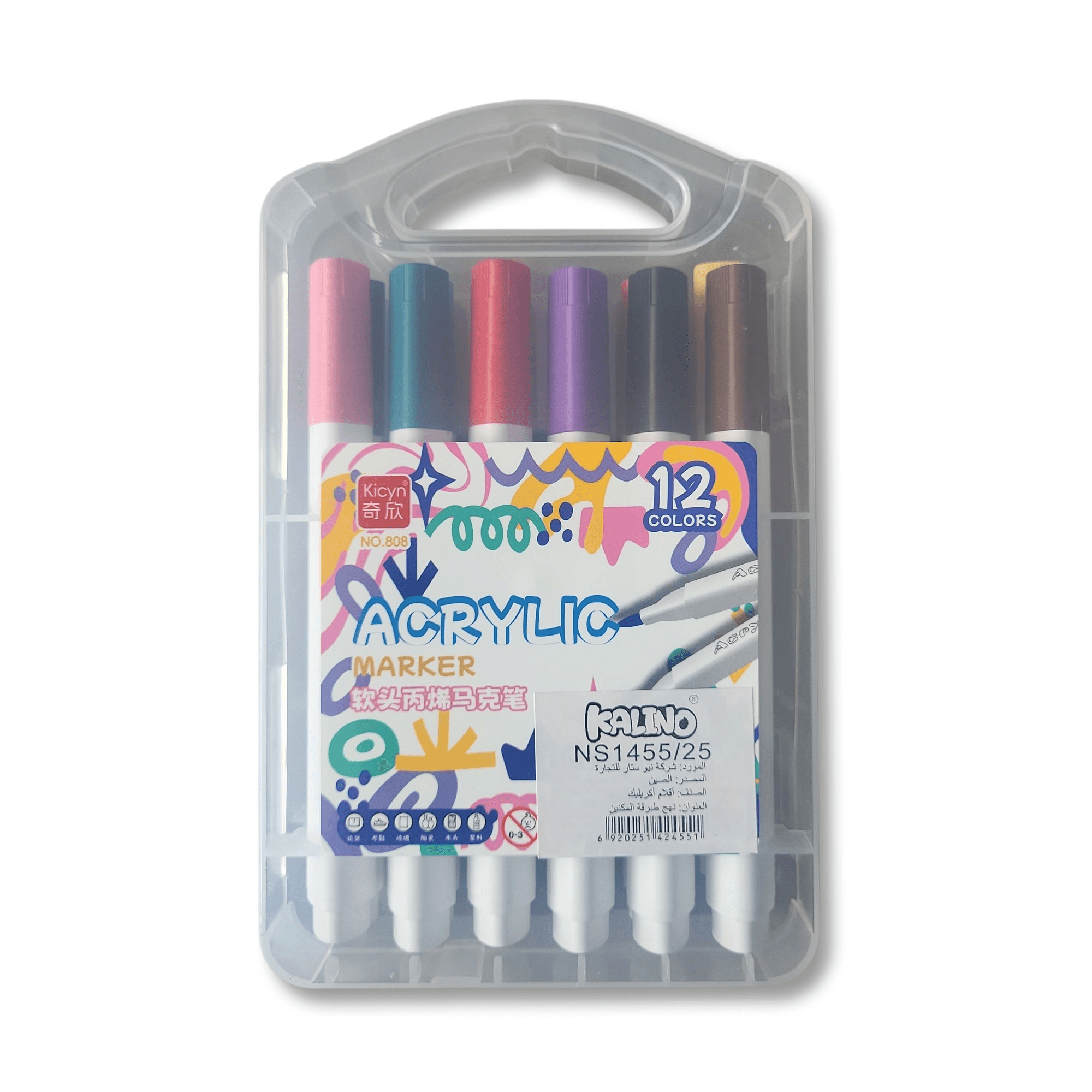 Marqueurs acryliques Kalino 12 couleurs — set de feutres peinture en mallette plate