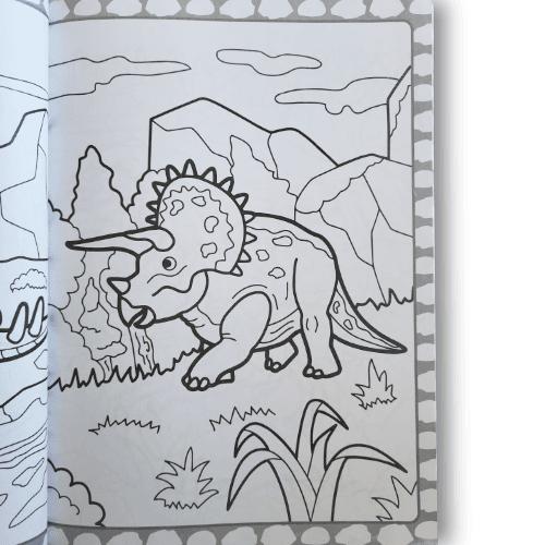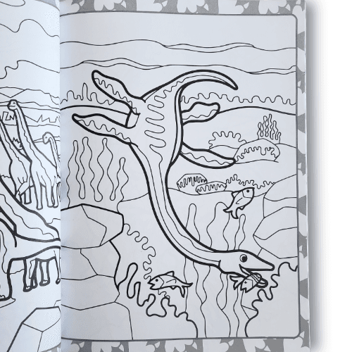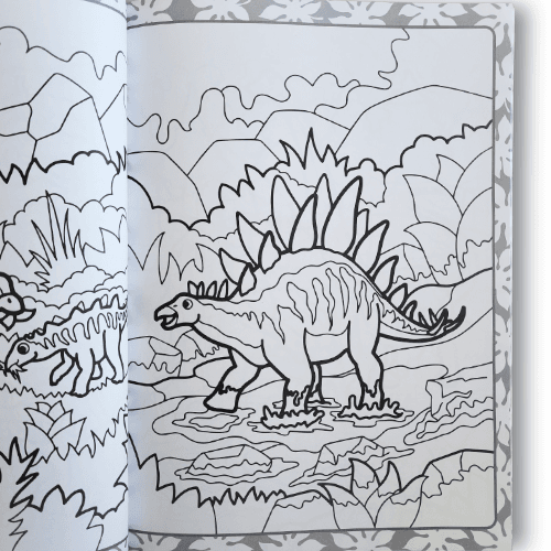 - Nombre d’illustrations : 72 images à colorier mettant en scène des dinosaures et leurs environnements
