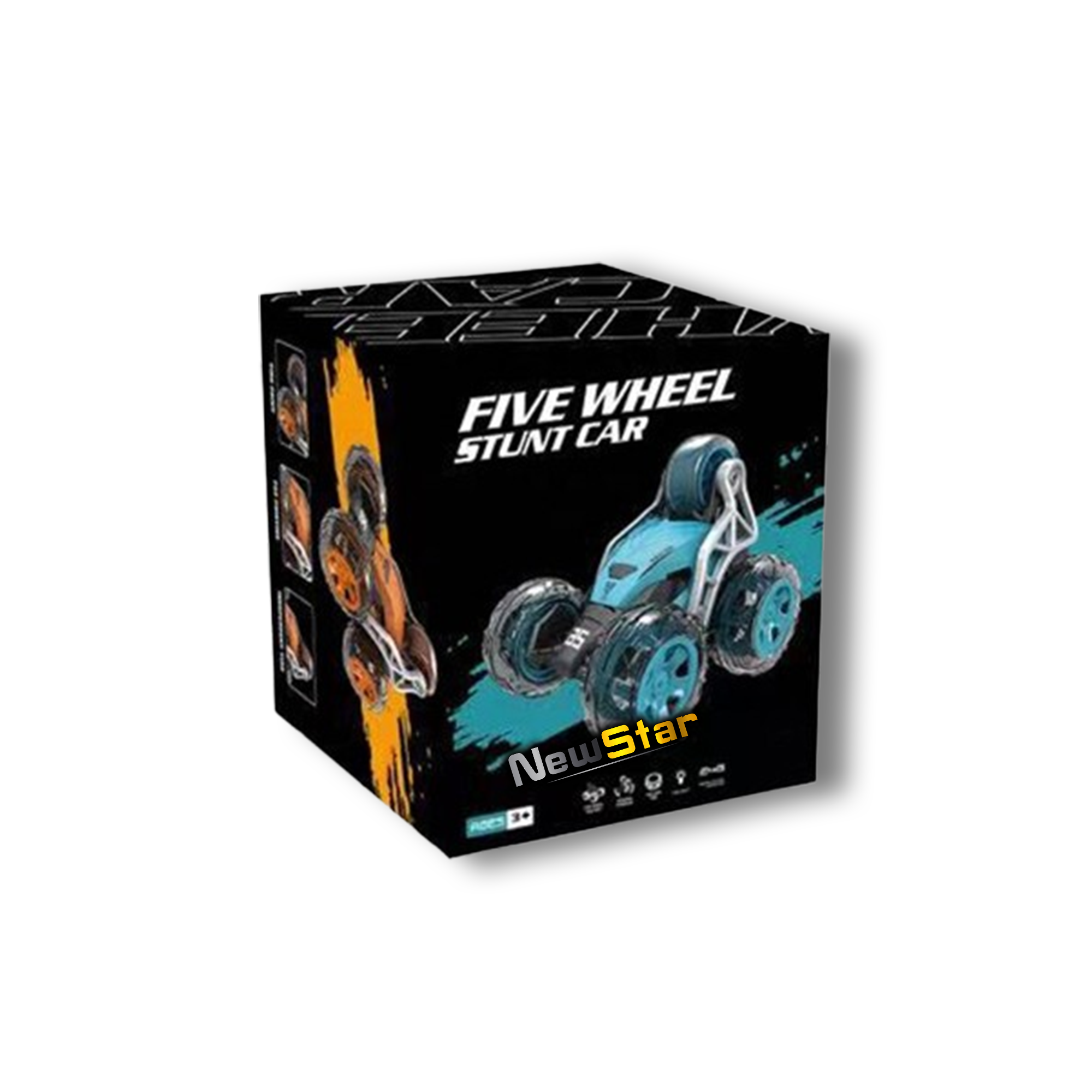 Voiture stunt télécommandée avec rotations 360°, flips automatiques, roues LED et télécommande — un jouet spectaculaire pour vitrines et rayons jouets.