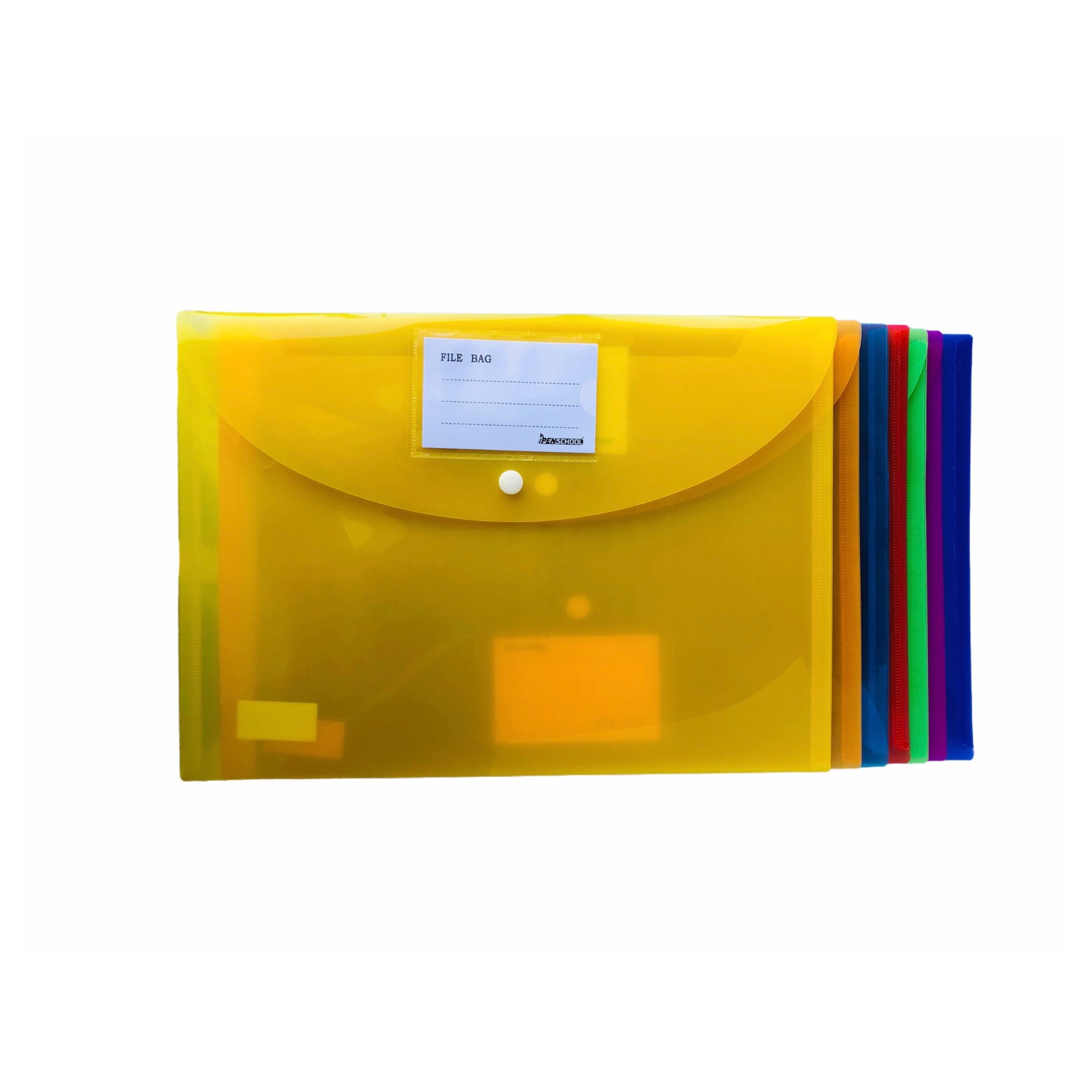 Chemise à bouton A4 simple Penschool, plastique résistant, fermeture pression, plusieurs couleurs.