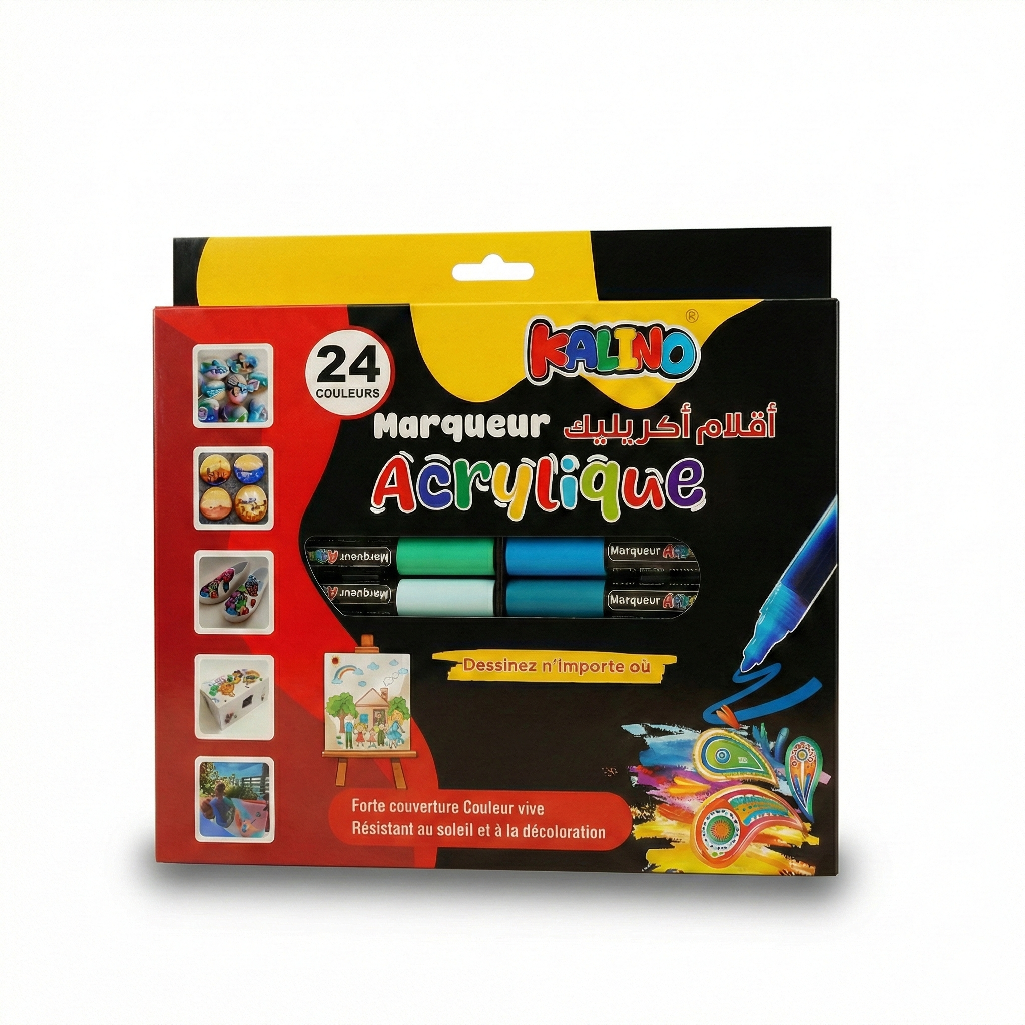coffret 24 marqueurs acryliques kalino — couleurs vives