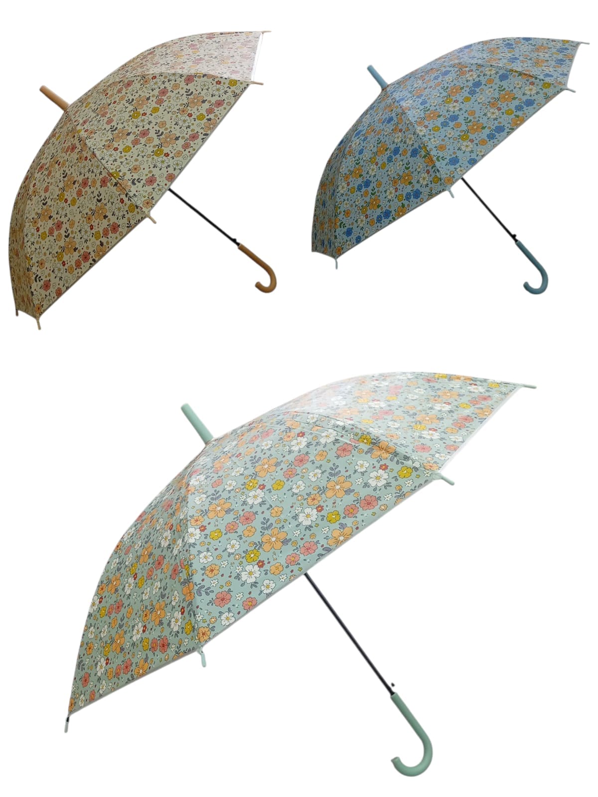Parapluie grand format avec motifs floraux, armature robuste et design élégant.
