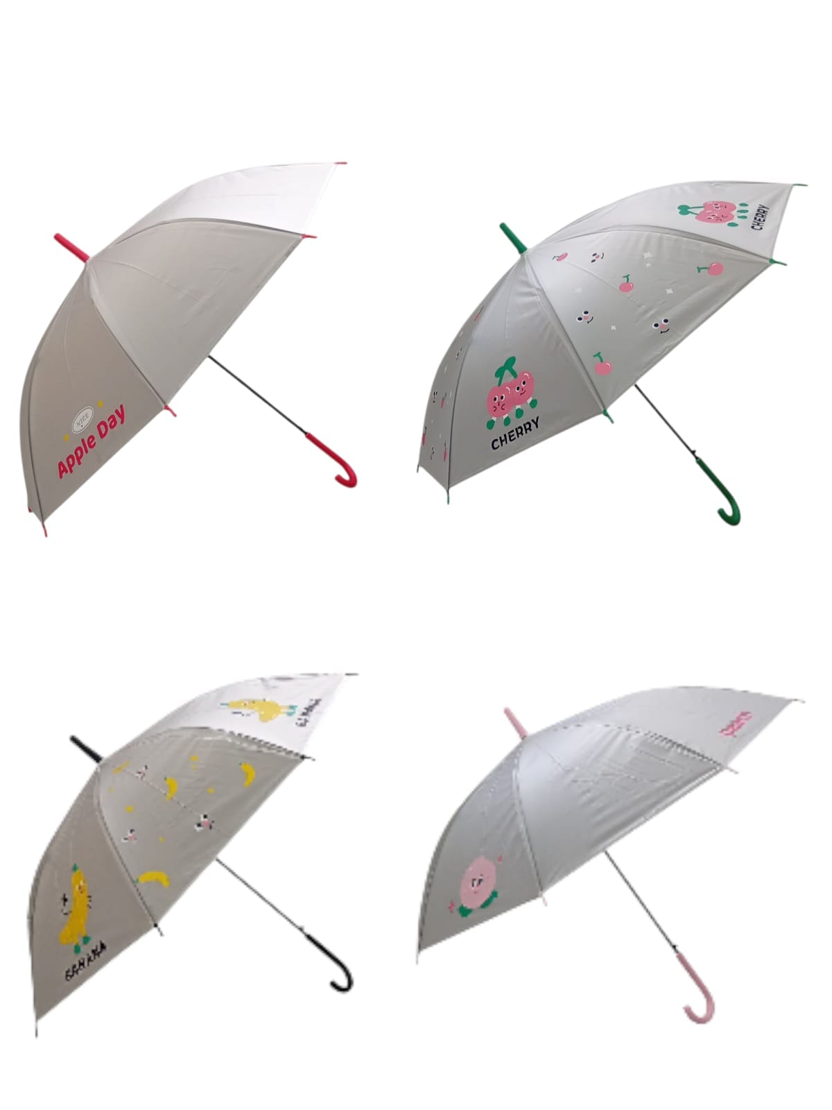 Parapluie motifs fruits avec toile robuste et armature résistante.