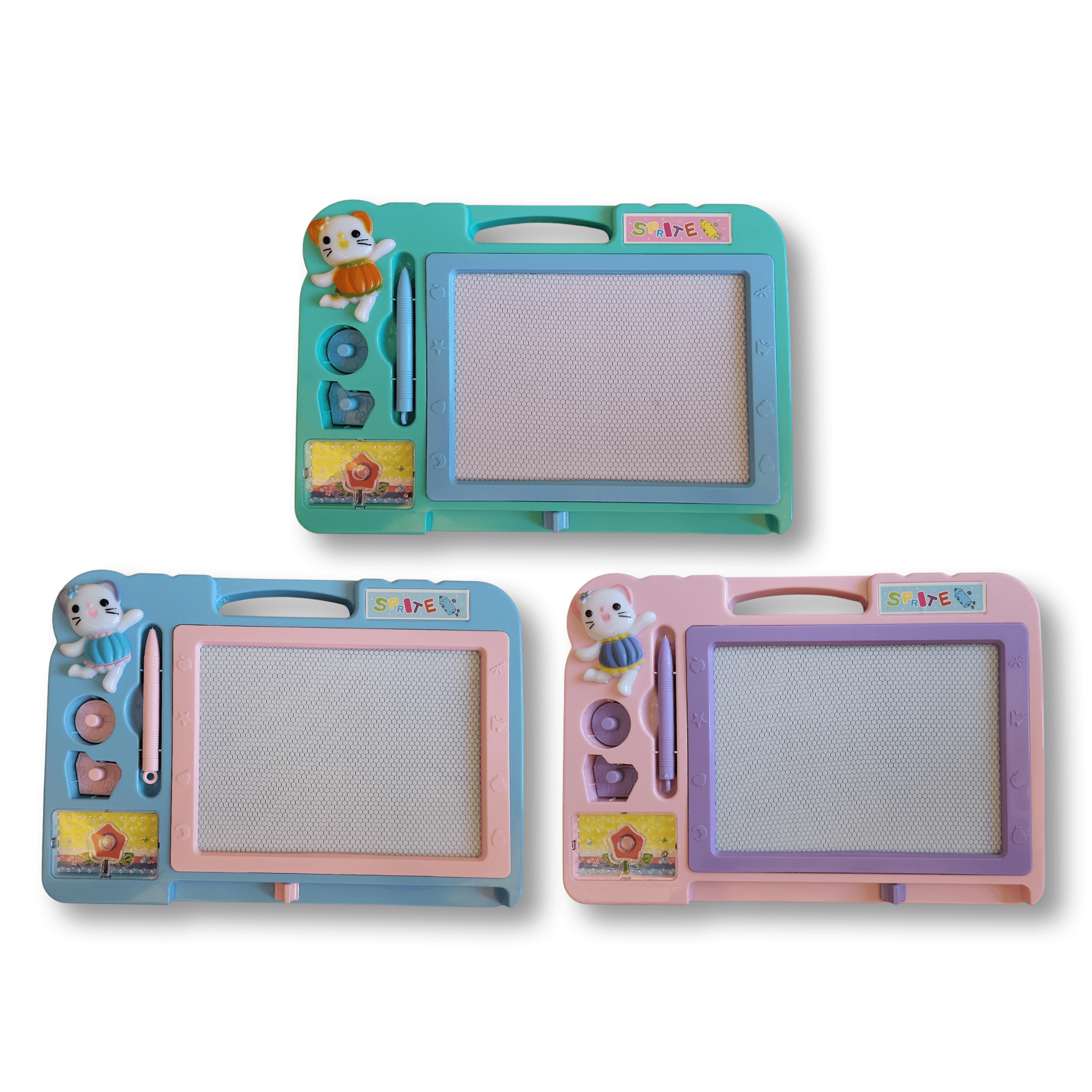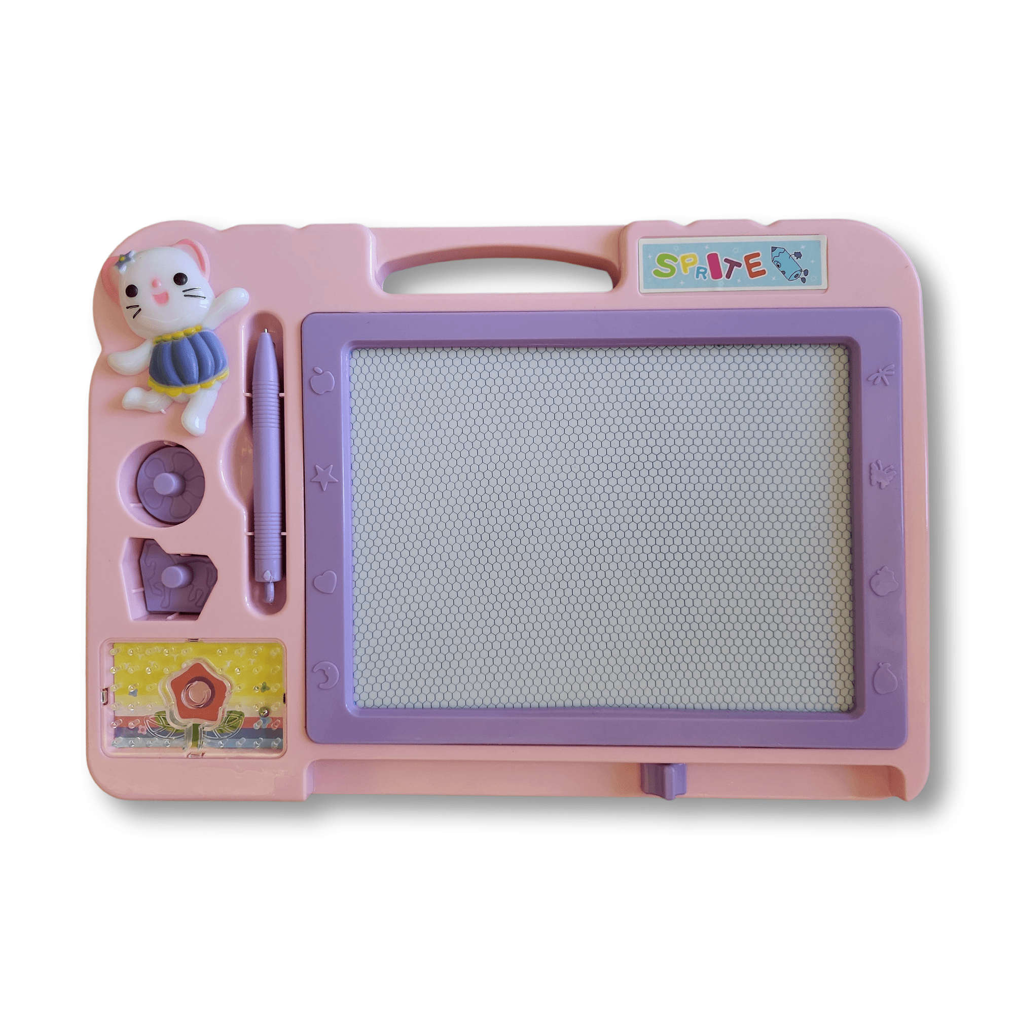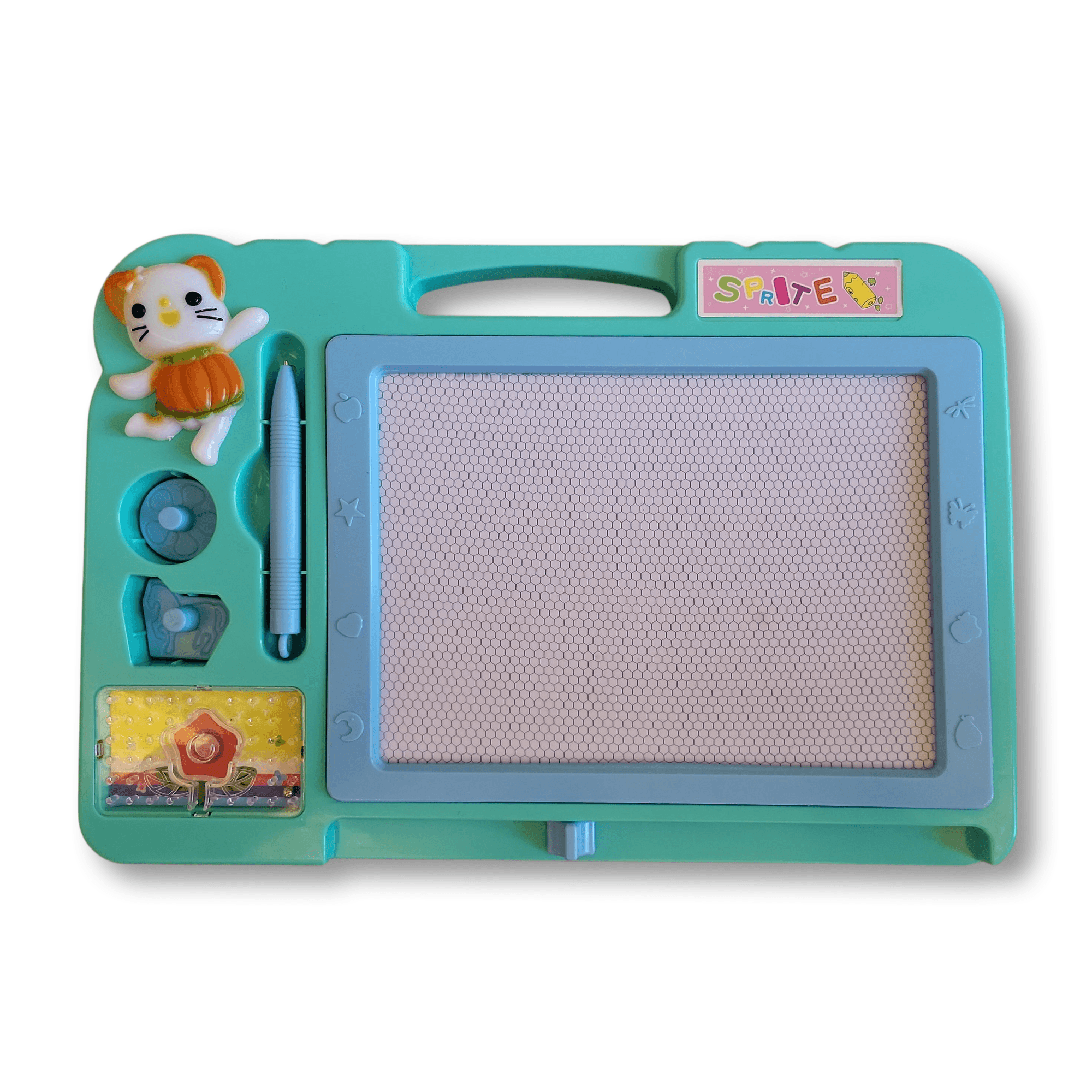 Tableau magique effaçable portable pour enfants — surface magnétique réutilisable, stylet et tampons inclus, poignée intégrée. Stimule la créativité, la motricité et l’apprentissage préscolaire. Convient dès 3 ans.