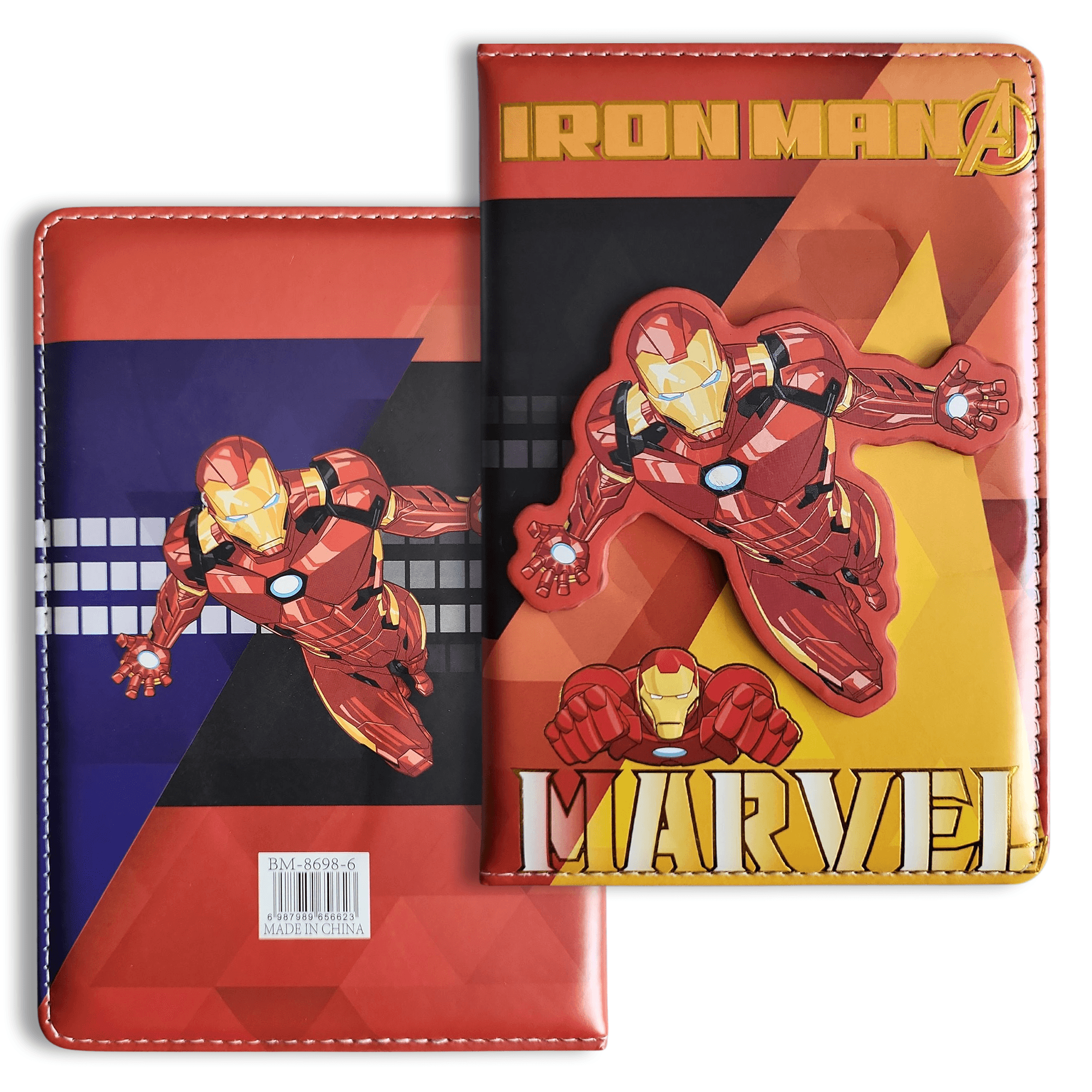Block‑note Marvel avec couverture rembourrée 3D et pages illustrées — format compact idéal pour notes, école et cadeaux.