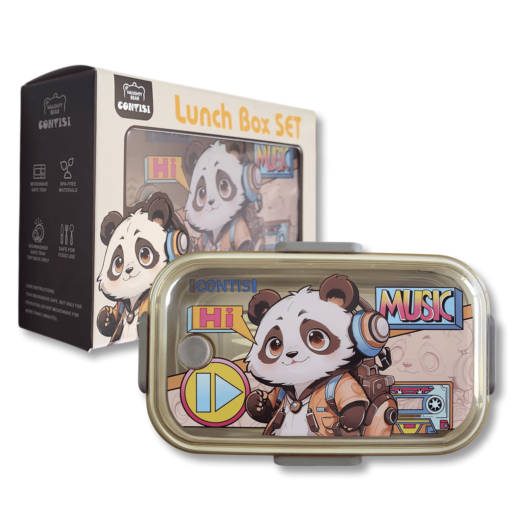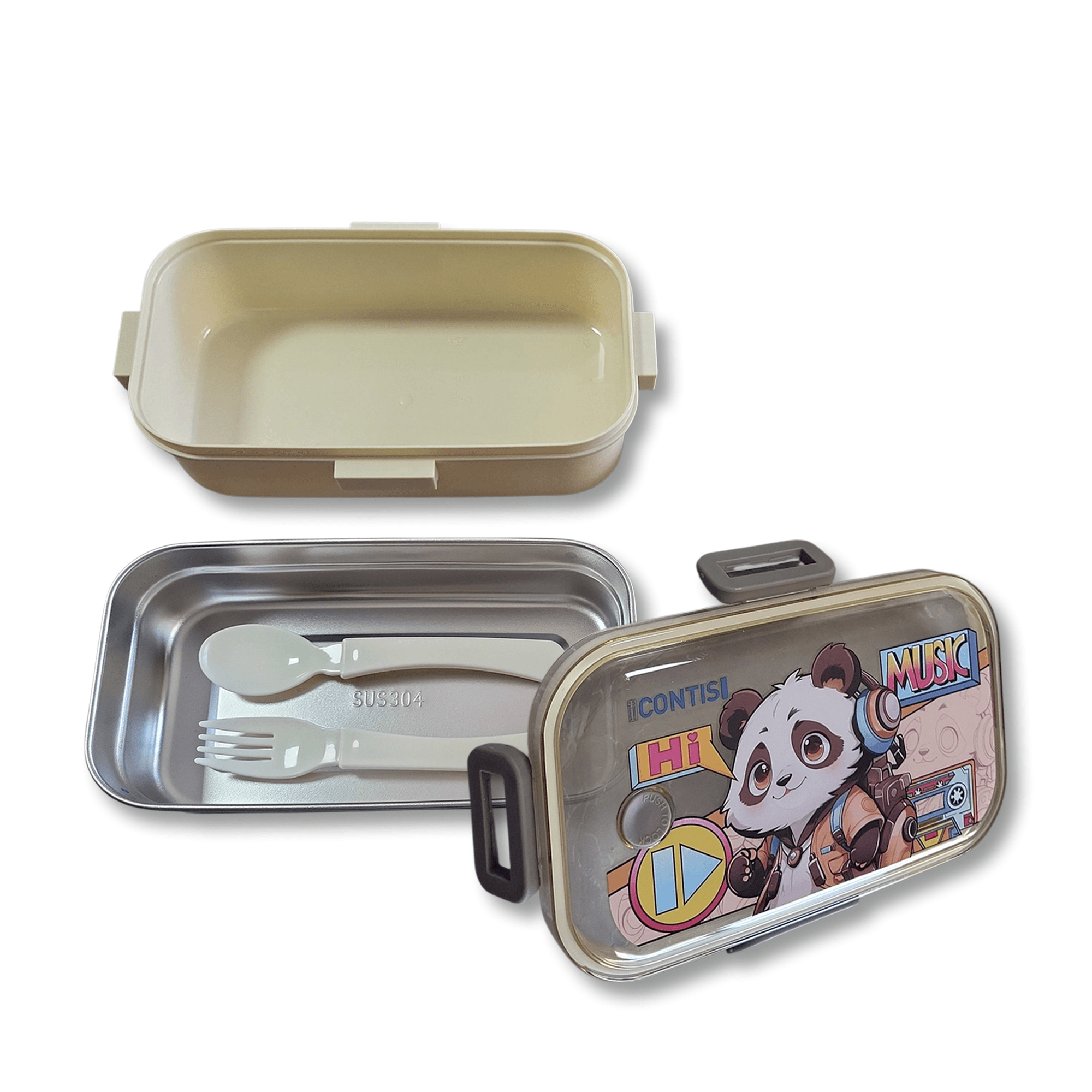 Lunchbox hygiénique avec plateau inox 304, compartiments séparés, petit pot hermétique et couverts inclus — pratique pour l’école et le bureau.
