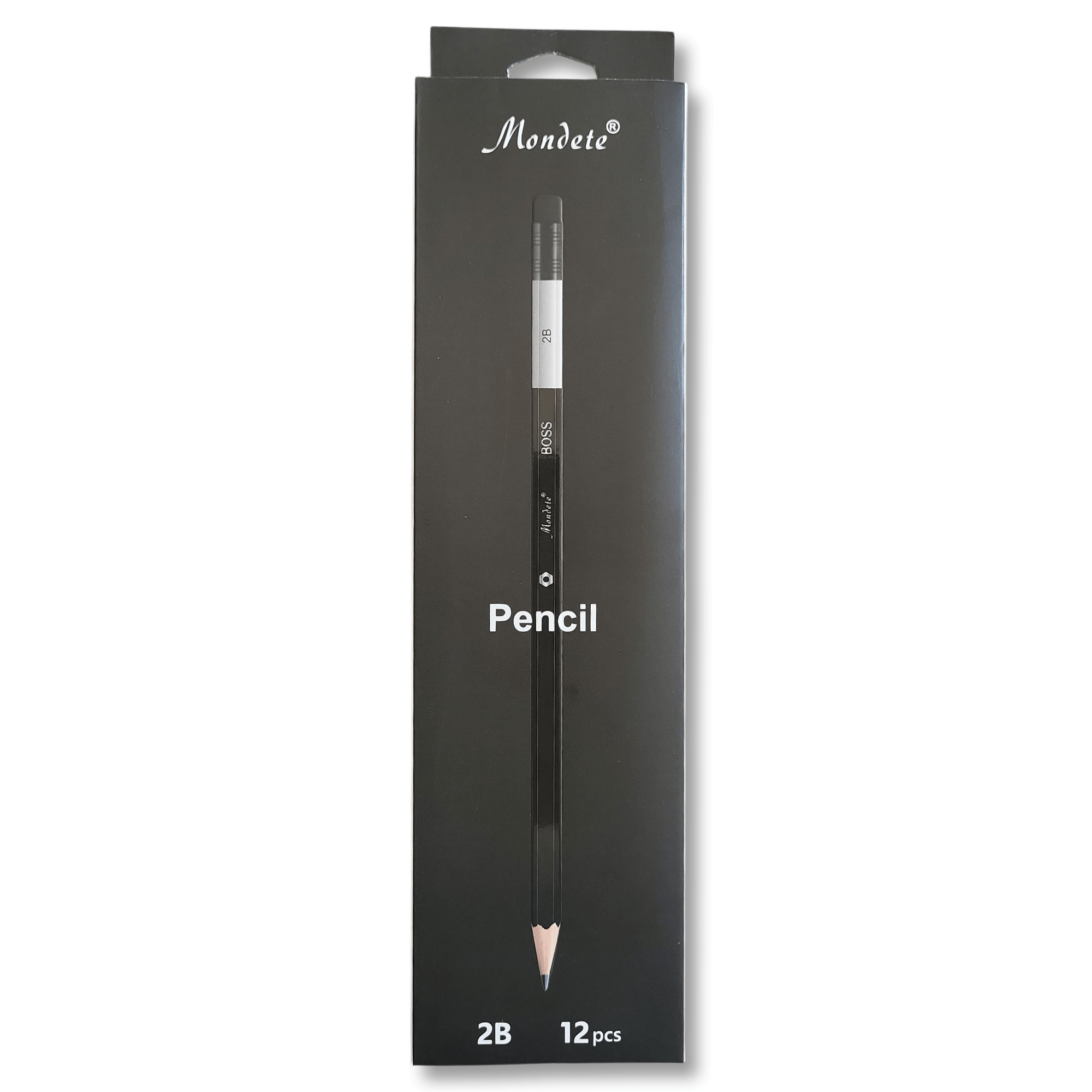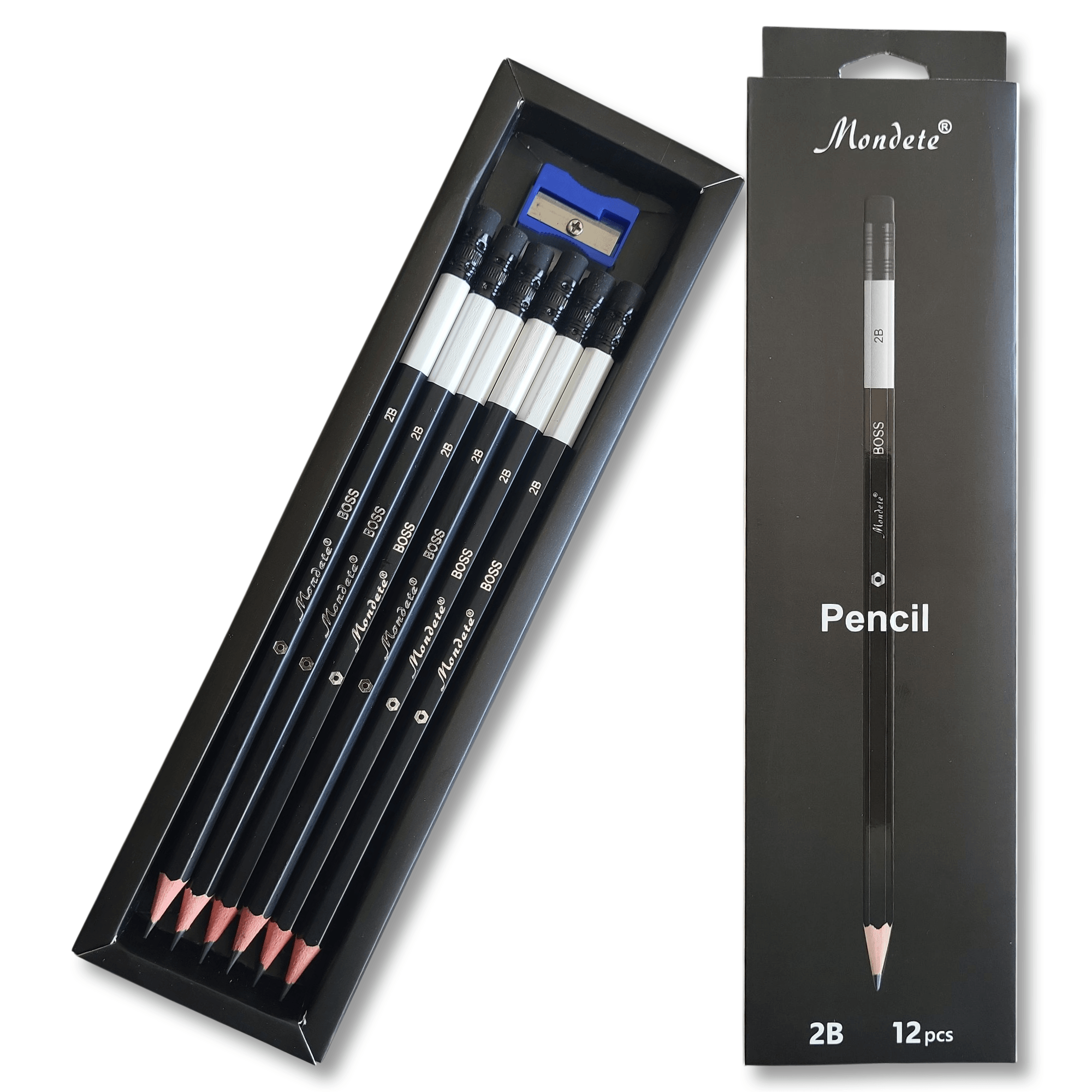 Coffret de 12 crayons graphite 2B noir Mondeleader BOSS avec gomme intégrée et taille-crayon — idéal pour l’école,