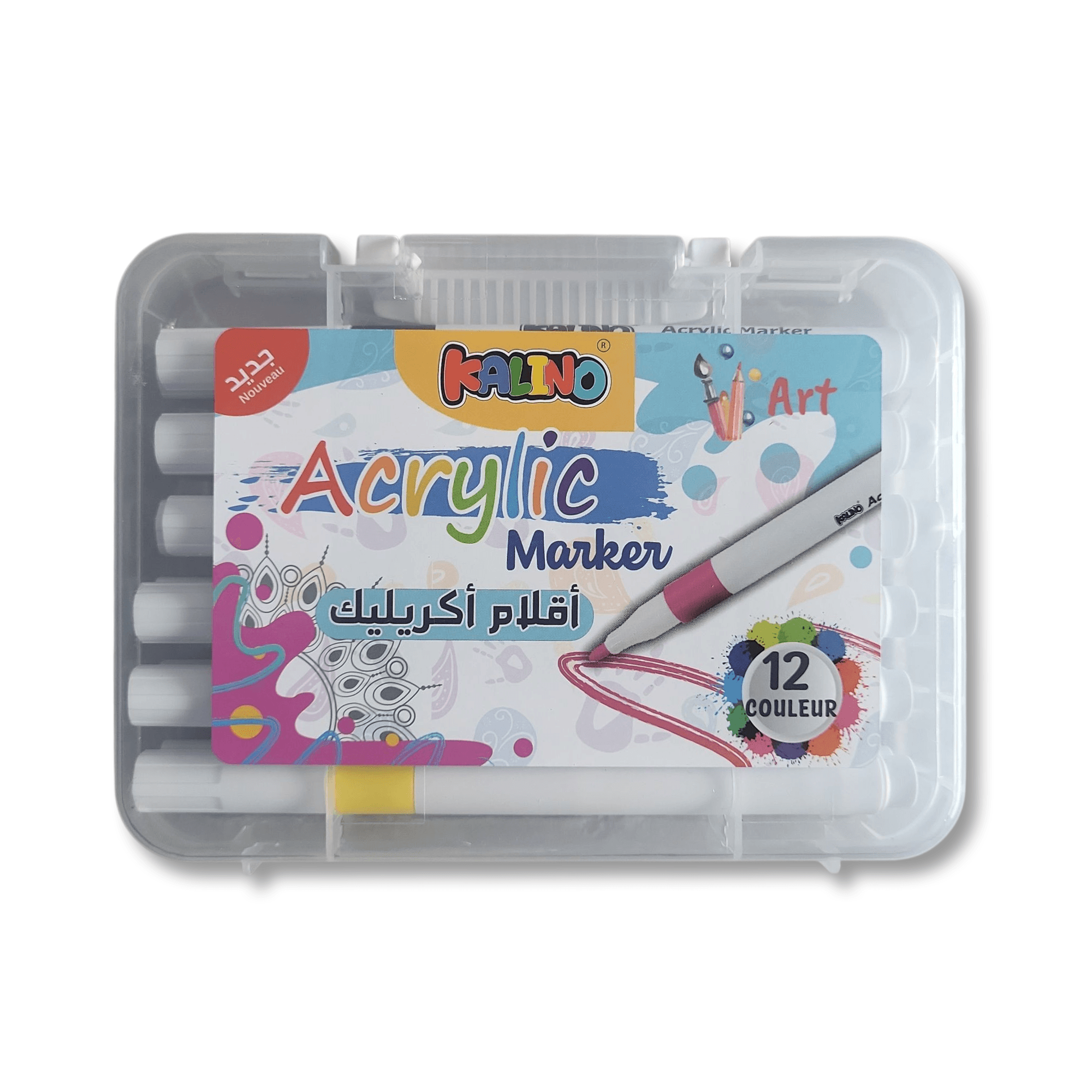 Set de 12 marqueurs acryliques Kalino dans une mallette plastique avec poignée — parfait pour le dessin,